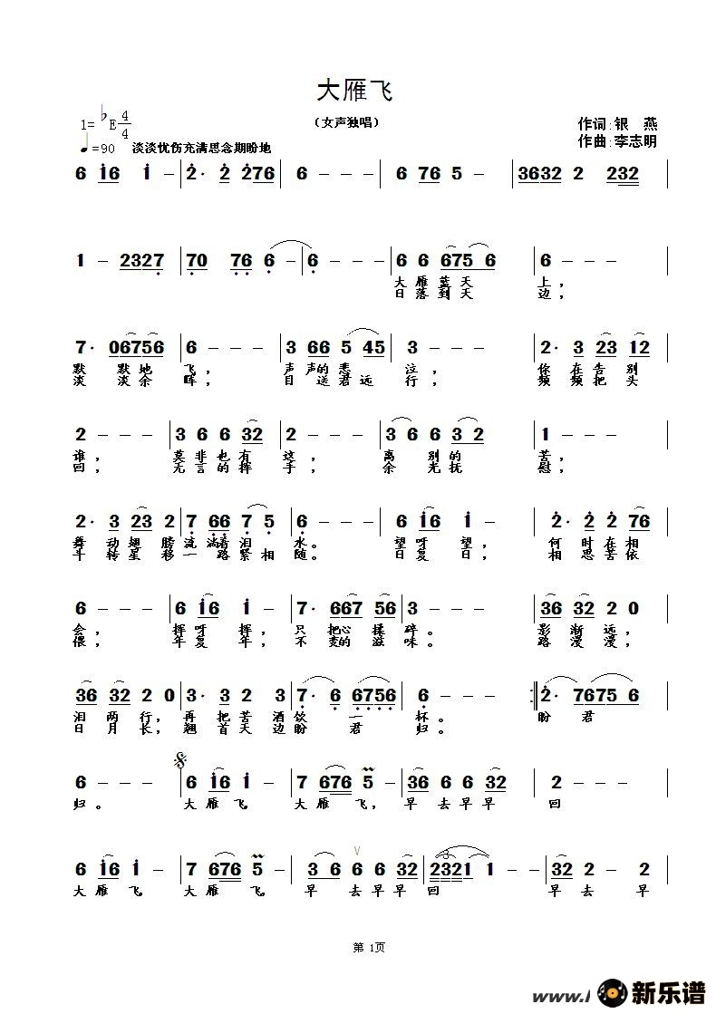 《大雁飞》最新曲谱 一点红云
