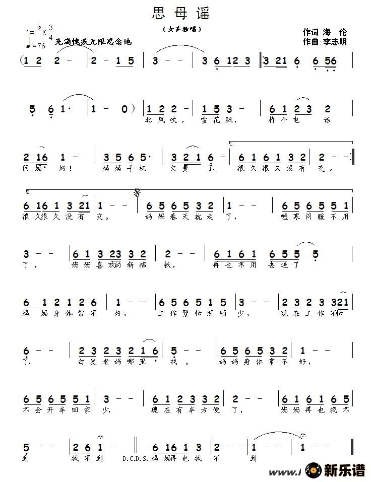 冰清雪儿演唱的思母谣歌词,思母谣最新曲谱.