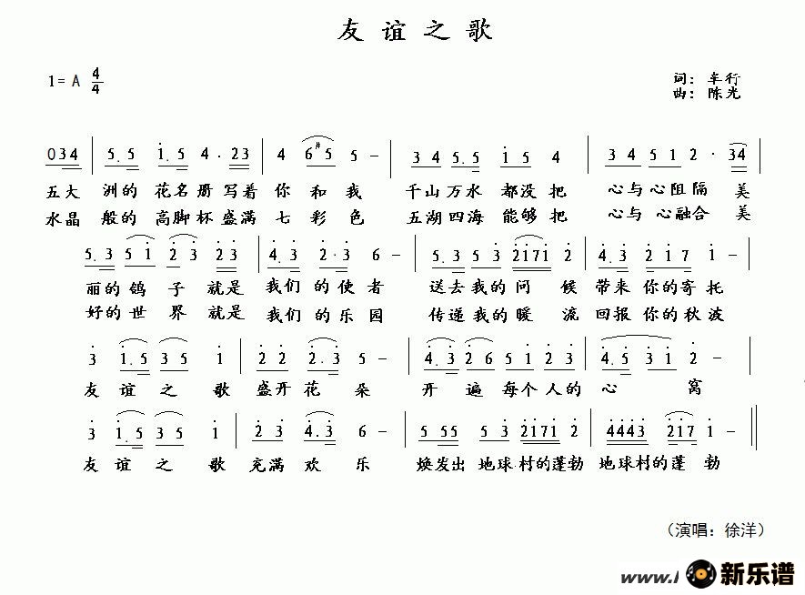 徐洋演唱的友谊之歌歌词,友谊之歌最新曲谱.