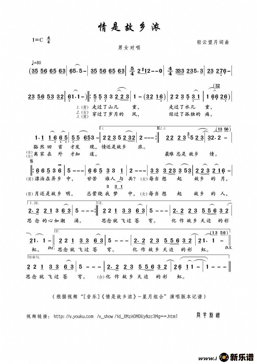 《情是故乡浓》最新曲谱 星月组合-君羊制谱