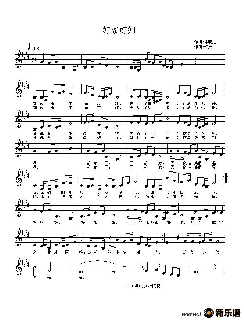 《好爹好娘》最新曲谱 佟居平