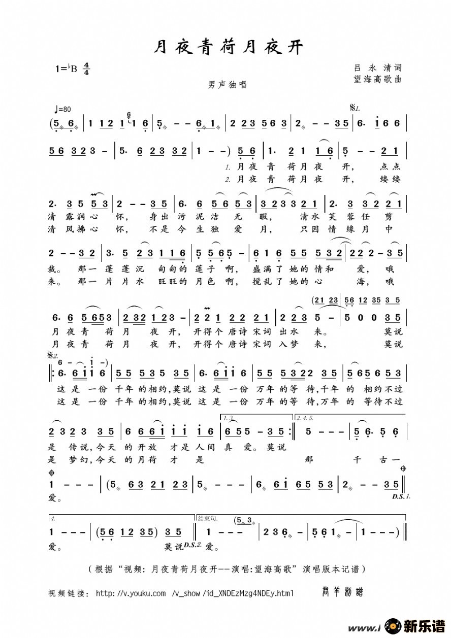 《月夜青荷月夜开》最新曲谱 望海高歌-君羊制谱