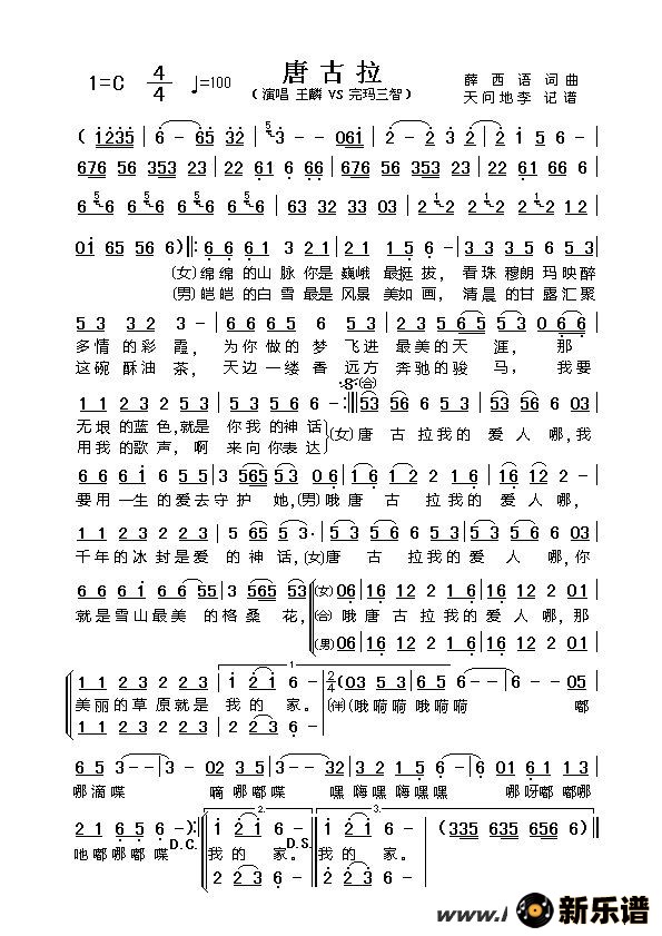《唐古拉》最新曲谱 王麟/完玛三智