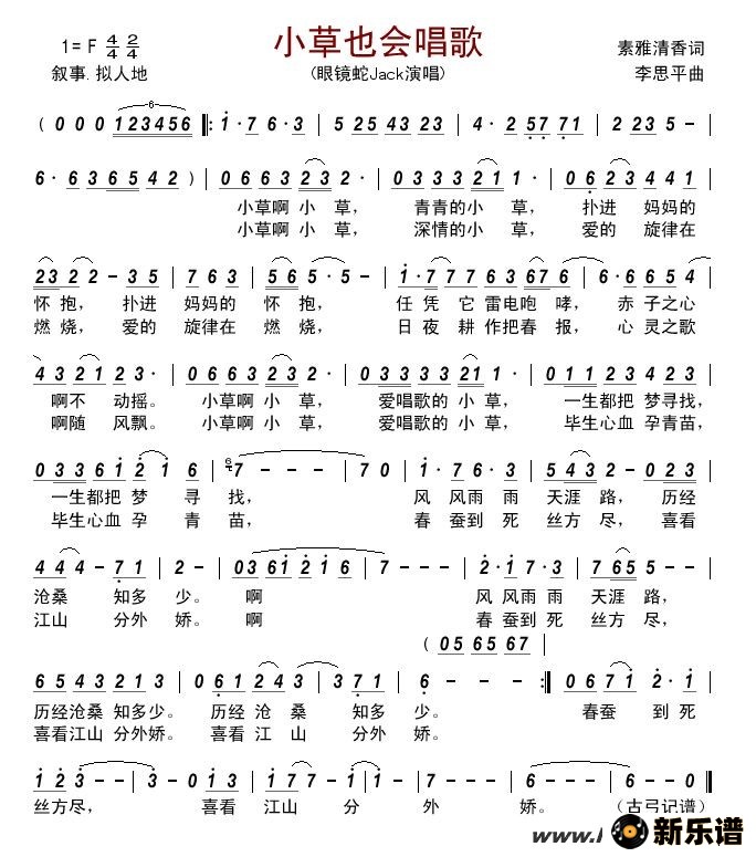 《小草也会唱歌 》最新曲谱 眼镜蛇Jack-古弓制谱