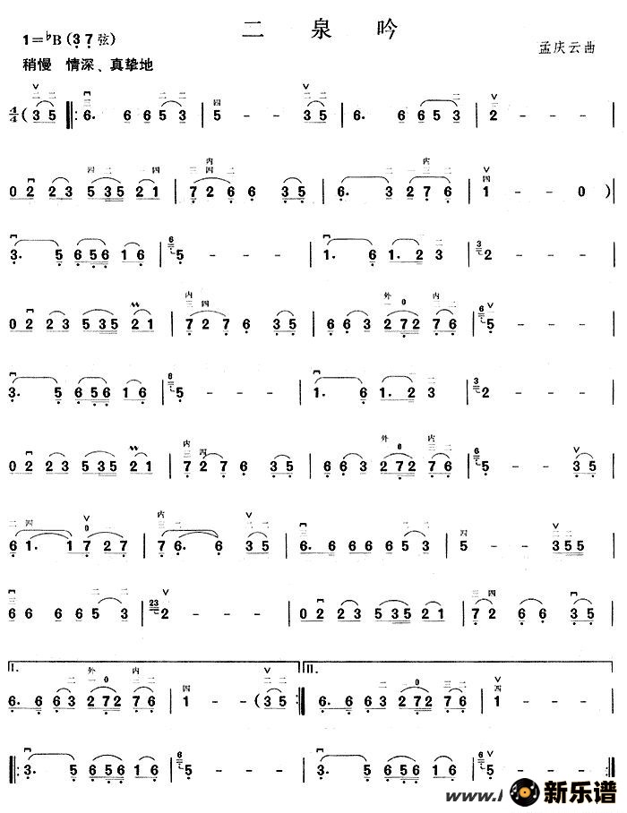 演唱的二泉吟歌词,二泉吟最新曲谱.