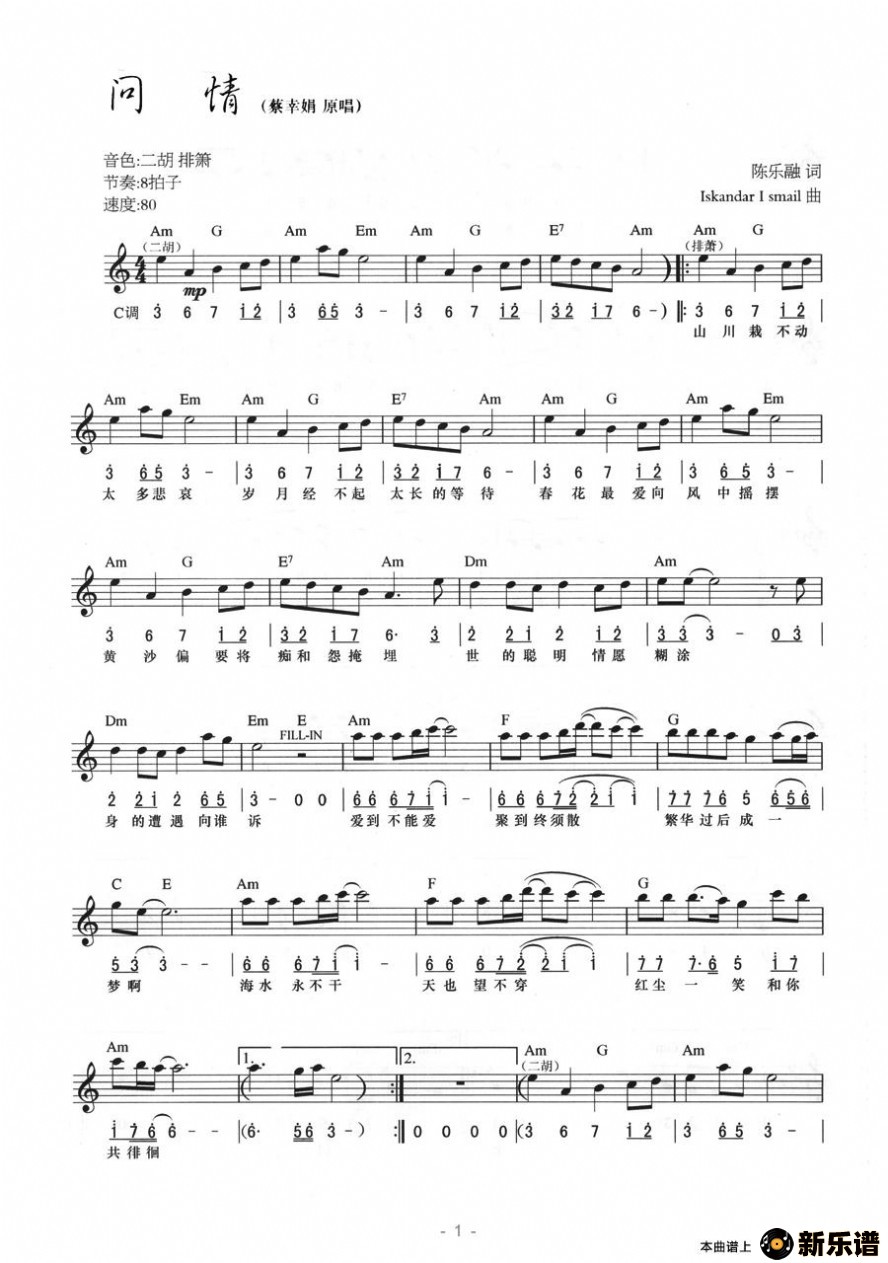 蔡幸娟演唱的问情歌词,问情最新曲谱.