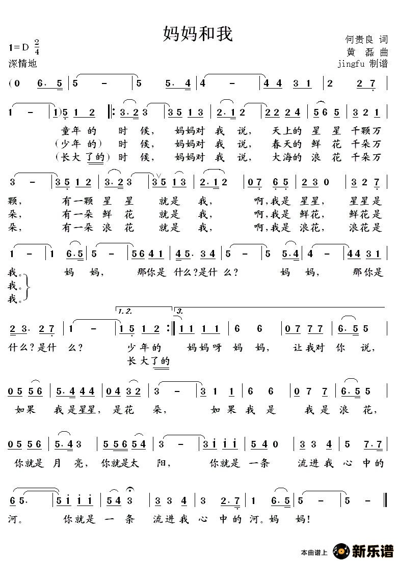 演唱的妈妈和我歌词,妈妈和我最新曲谱.