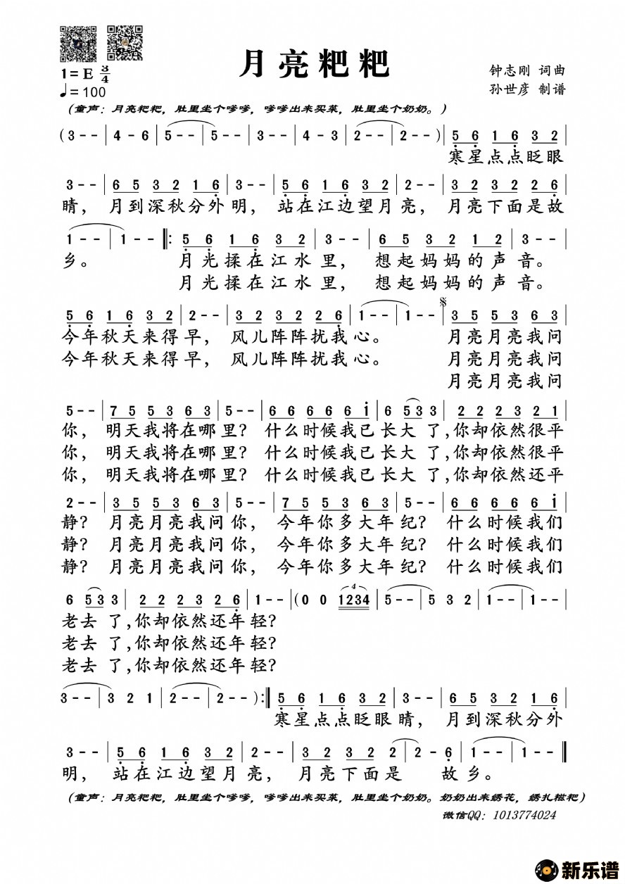 《月亮粑粑》最新曲谱 赵雷-孙世彦制谱