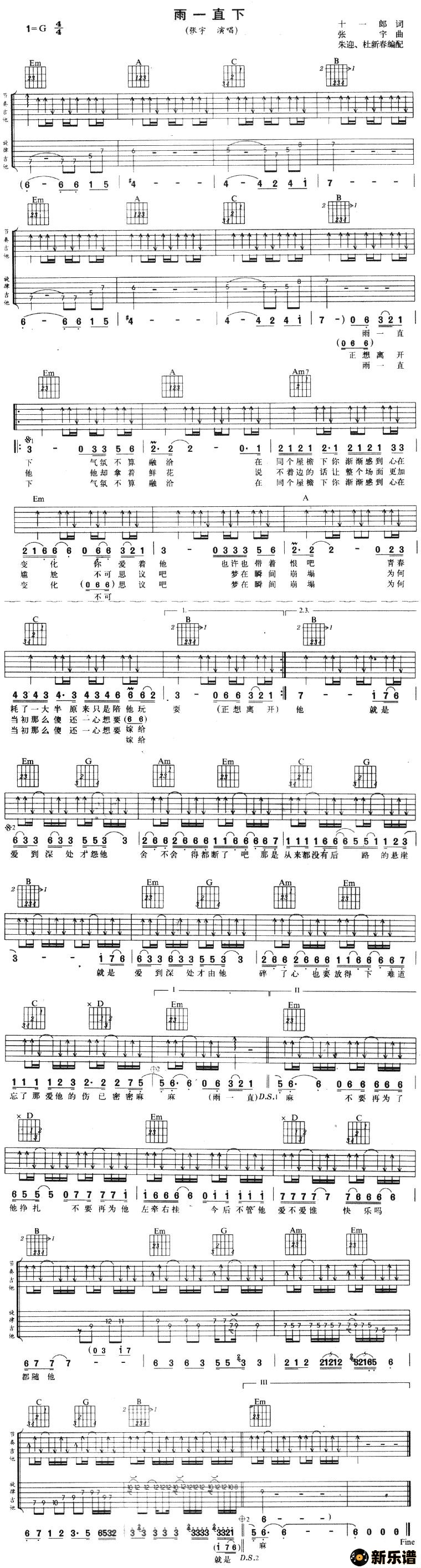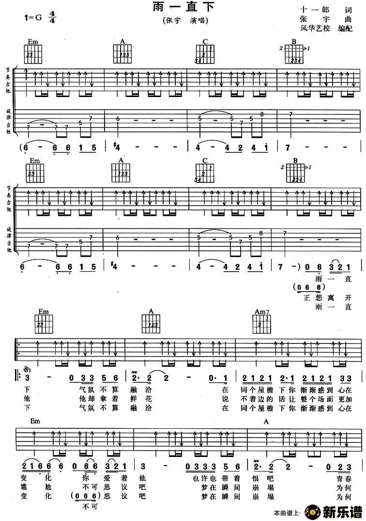 《雨一直下》最新曲谱 张宇
