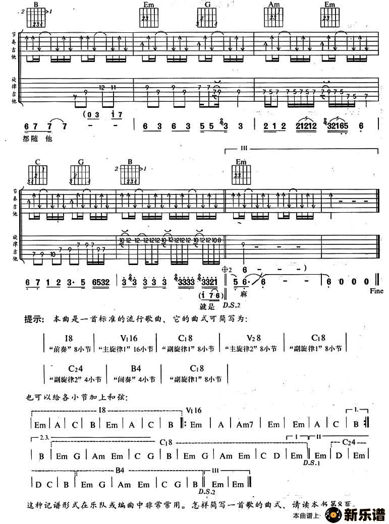 版本一:转自《缘分吉他》