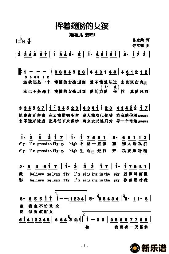 演唱的挥着翅膀的女孩歌词,挥着翅膀的女孩最新曲谱.