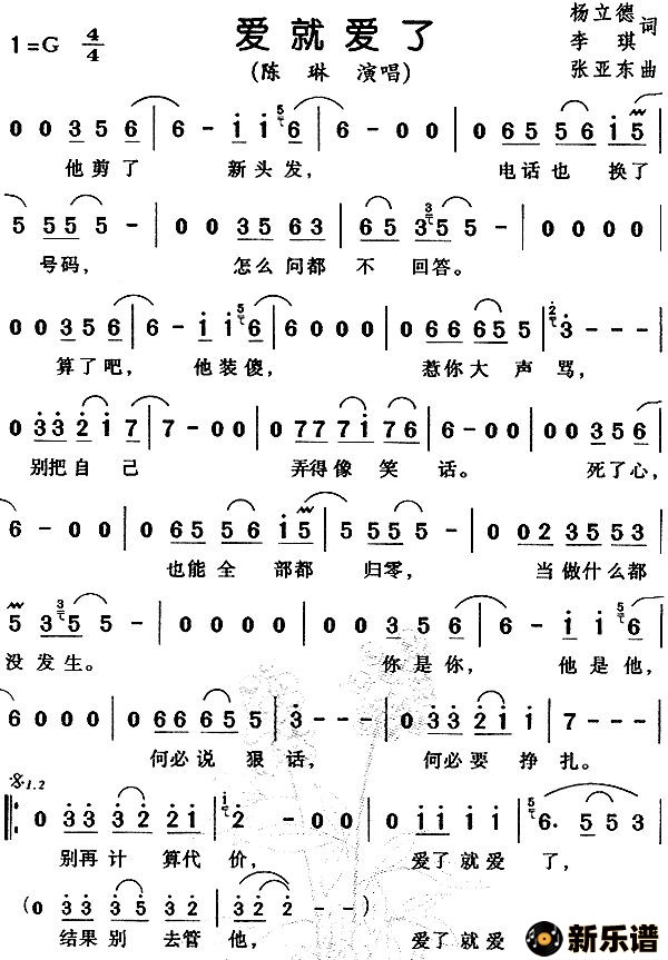 《爱就爱了》最新曲谱 陈琳