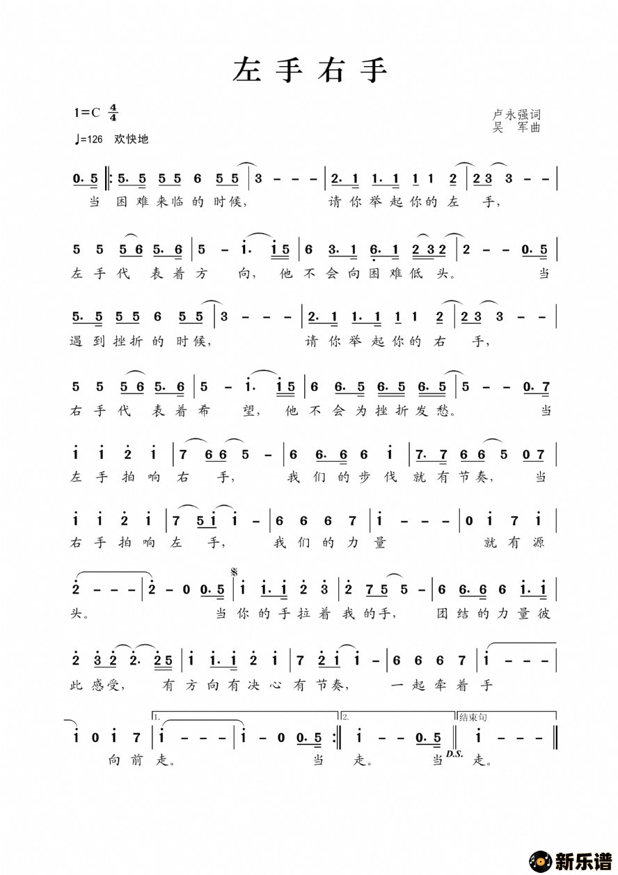 左手右手(《喜羊羊虎虎生威》插曲、带和弦五线谱)