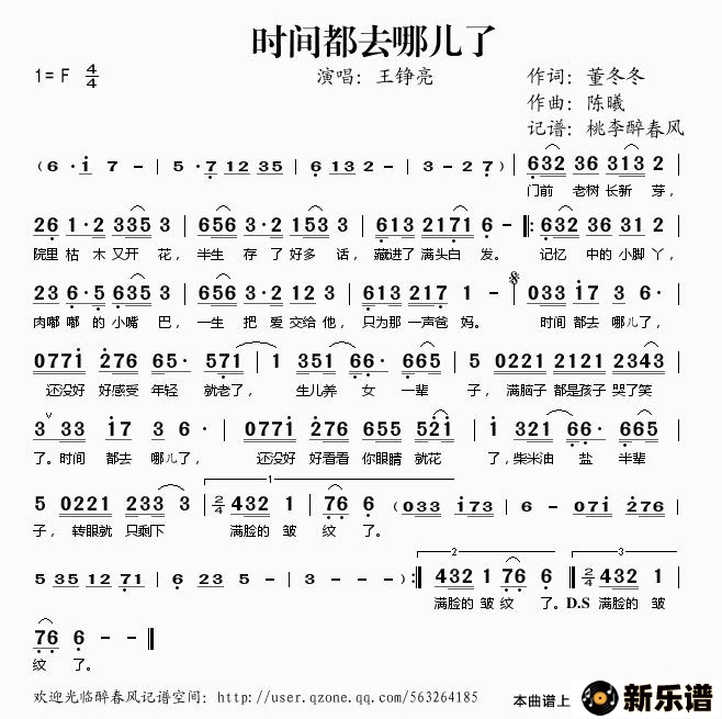 《时间都去哪儿了》最新曲谱 王铮亮-桃李醉春风制谱