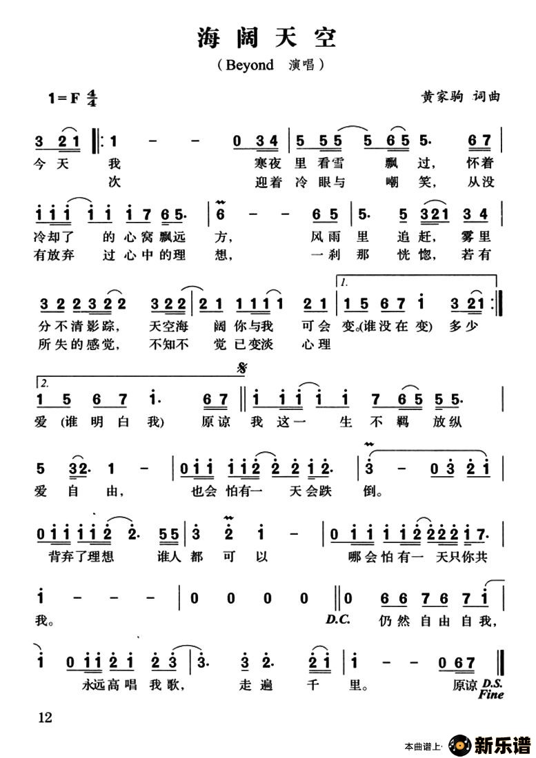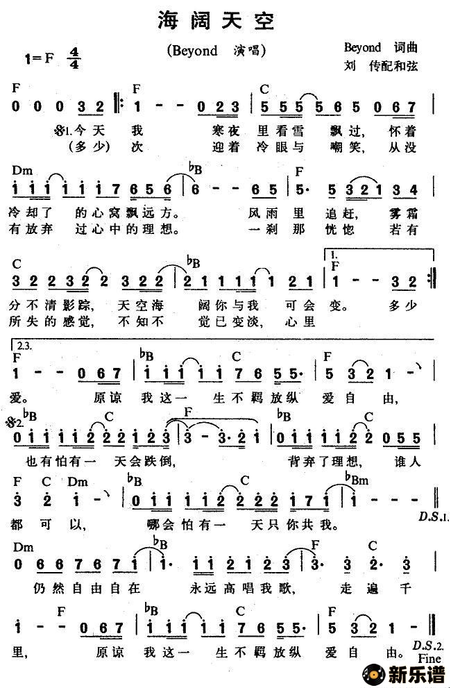 《海阔天空》最新曲谱 Beyond