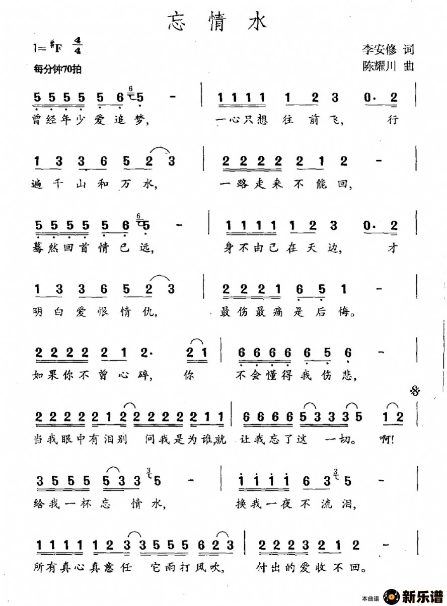 刘德华演唱的忘情水歌词,忘情水最新曲谱.