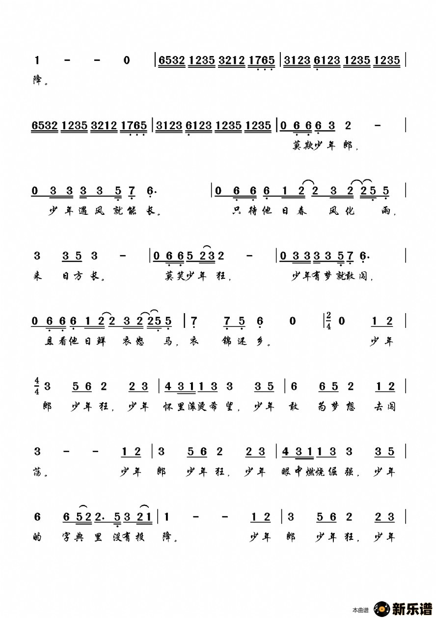 《少年郎》最新曲谱 彭均/优秀少年好好