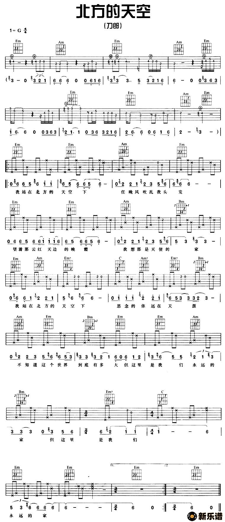 《北方的天空下》最新曲谱 刀郎