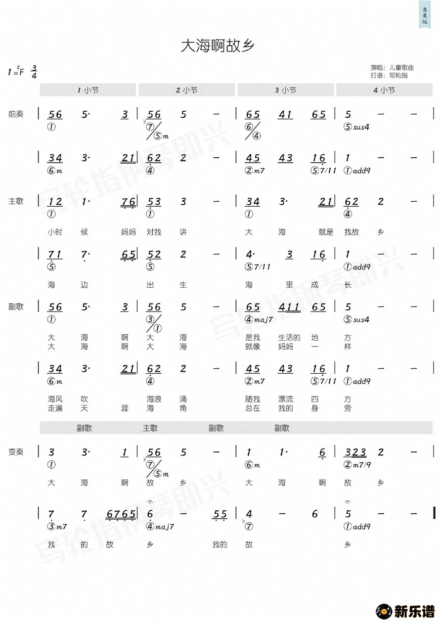 群星演唱的大海啊故乡歌词,大海啊故乡最新曲谱.