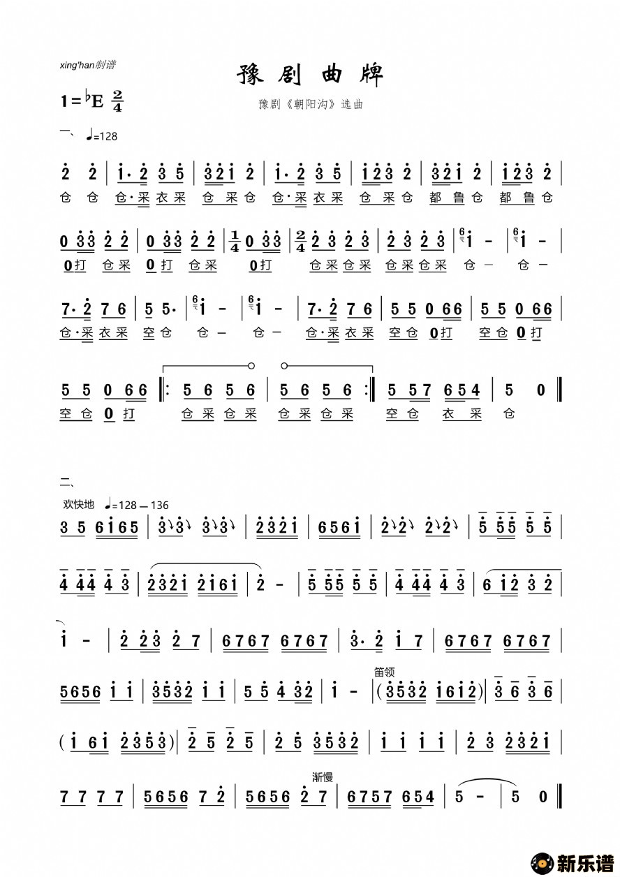 演唱的豫剧曲牌歌词,豫剧曲牌最新曲谱.