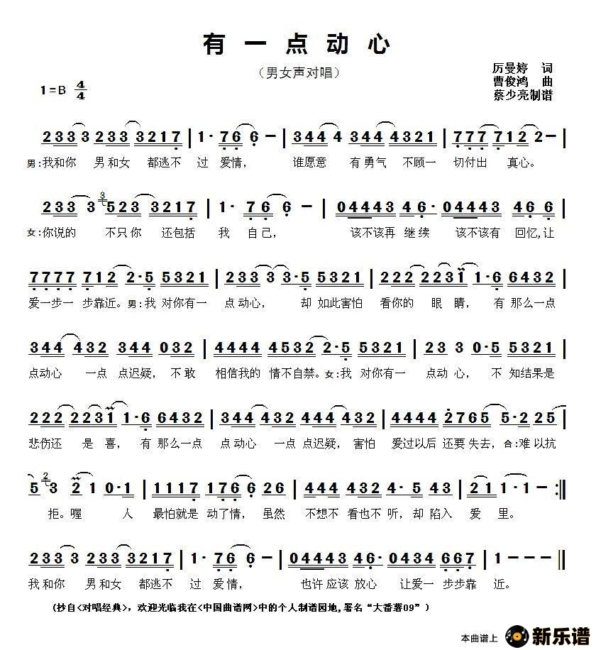 > 有一点动心最新曲谱