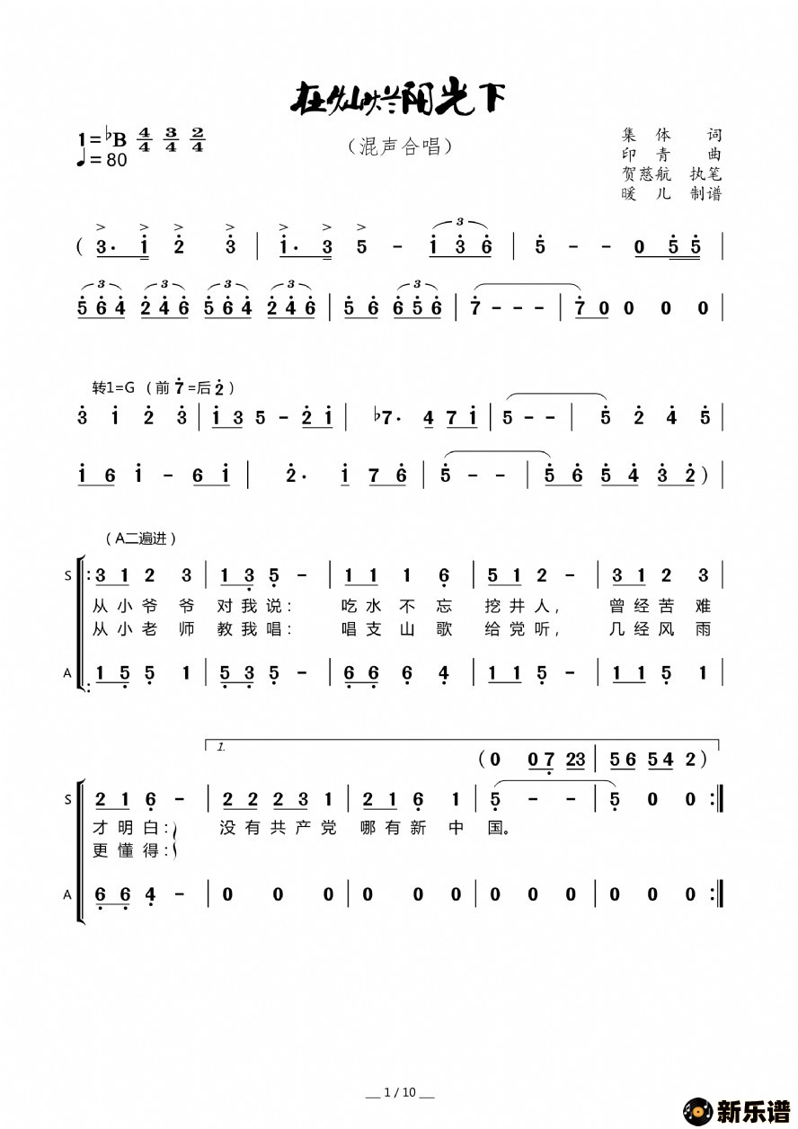 演唱的在灿烂阳光下歌词,在灿烂阳光下最新曲谱.