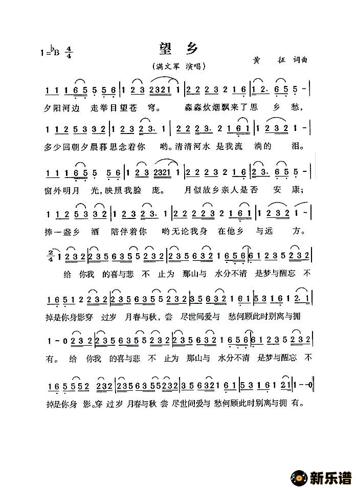 满文军演唱的望乡歌词,望乡最新曲谱.