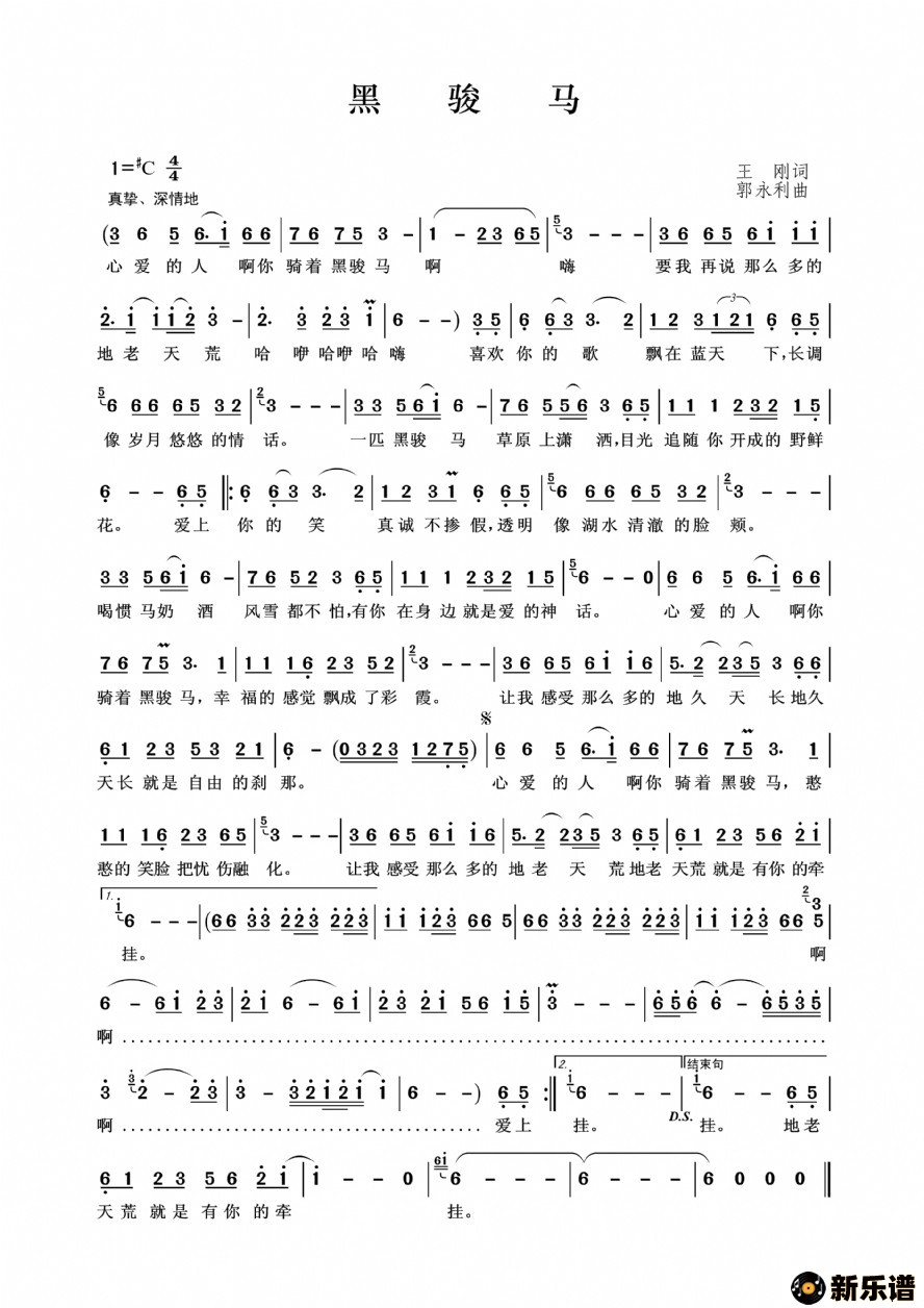 乌兰托娅演唱的黑骏马歌词,黑骏马最新曲谱.