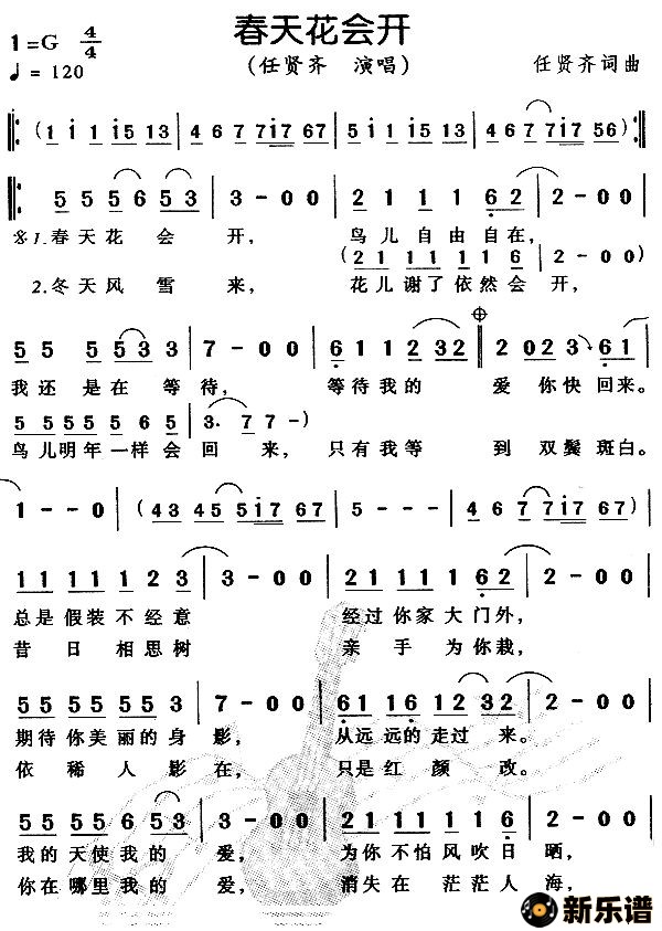 《春天花会开》最新曲谱 任贤齐