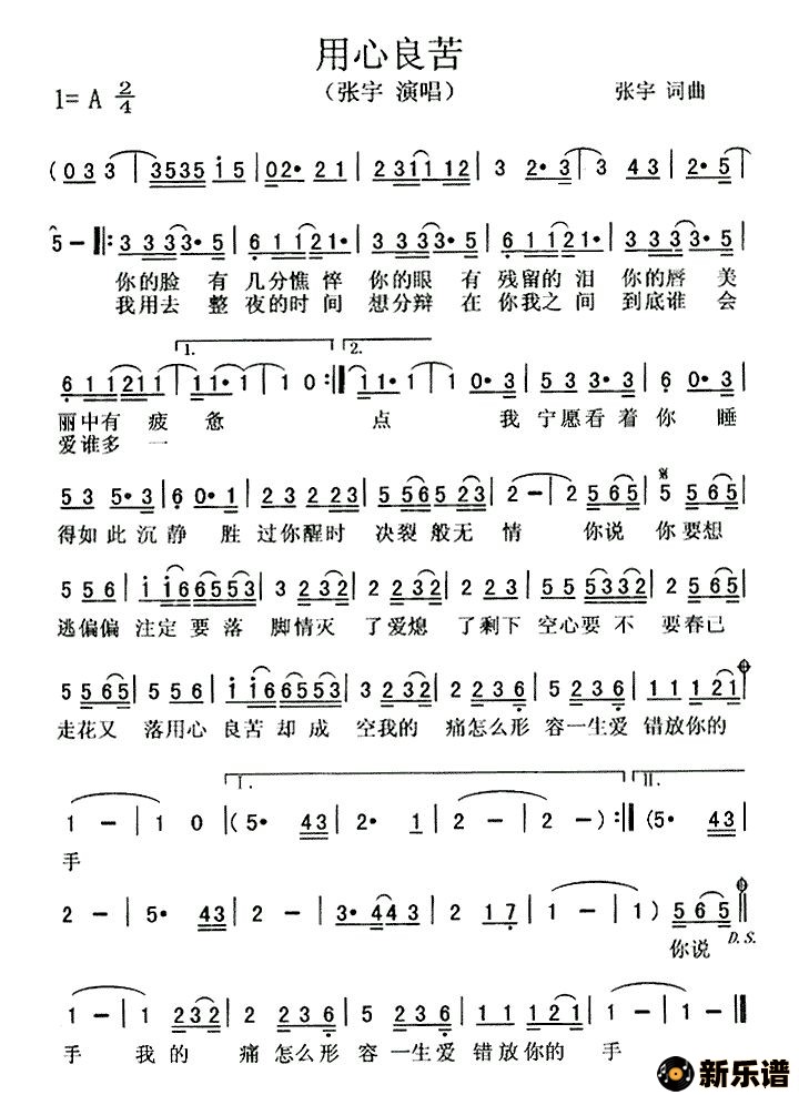 张宇演唱的用心良苦歌词,用心良苦最新曲谱.