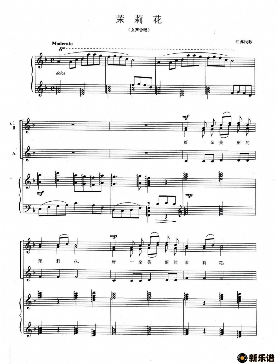 作词:江苏民歌 作曲:佚名(女声合唱)(正谱)