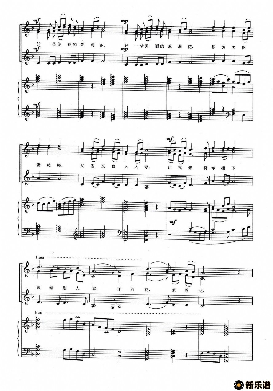 《茉莉花》最新曲谱