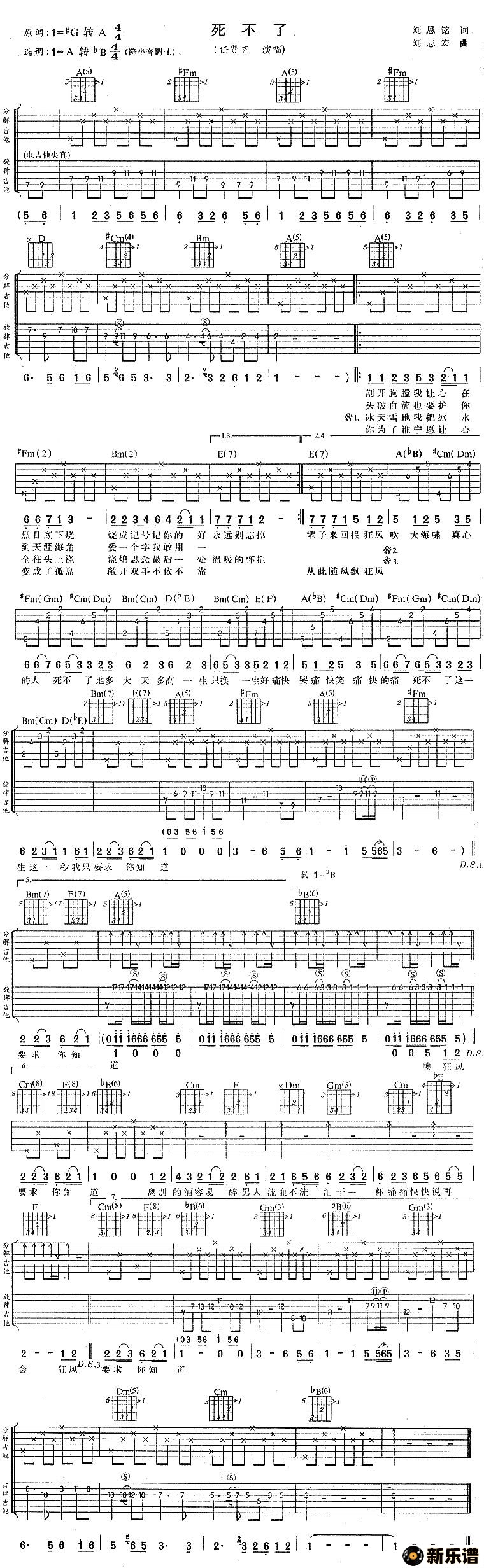 任贤齐演唱的死不了歌词,死不了最新曲谱.