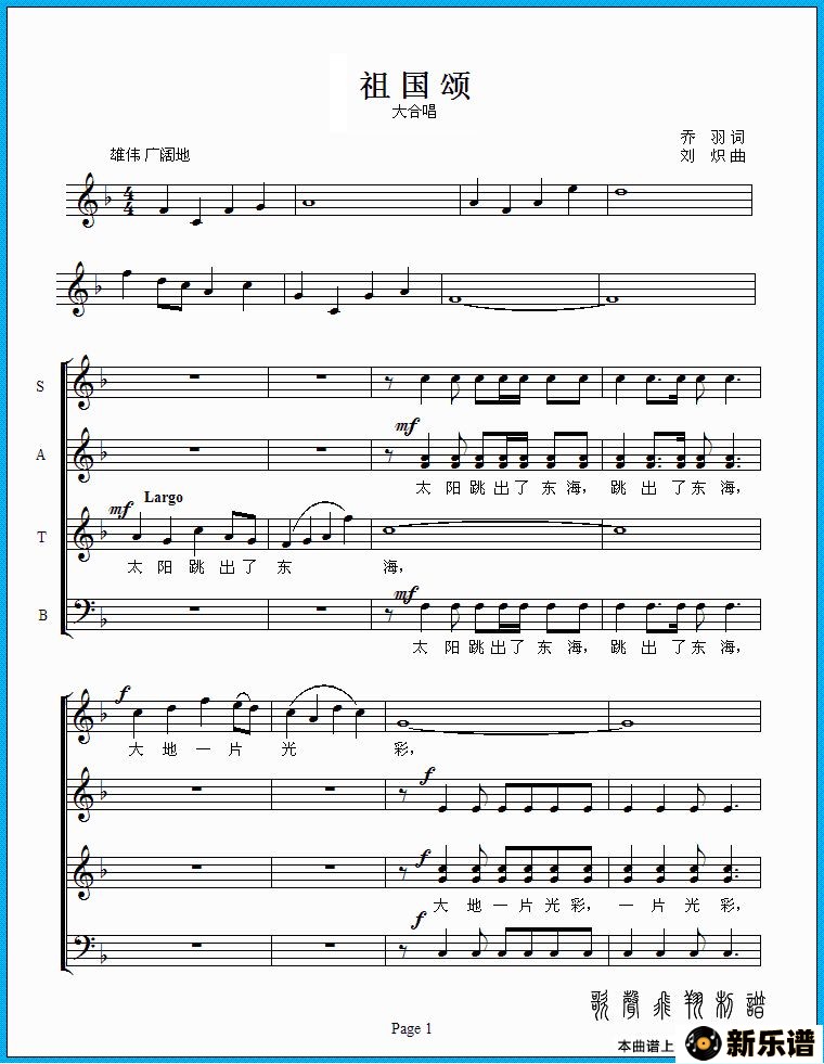 《祖国颂》最新曲谱 中国交响乐团合唱团