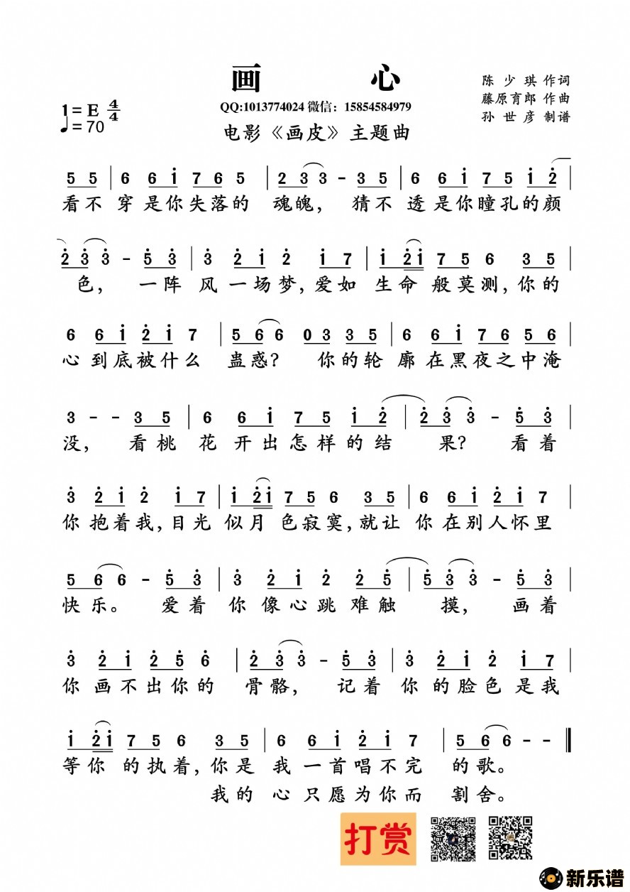 张靓颖演唱的画心歌词,画心最新曲谱.