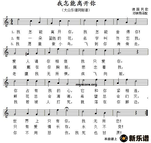 演唱的【德】我怎能离开你歌词,【德】我怎能离开你最新曲谱.