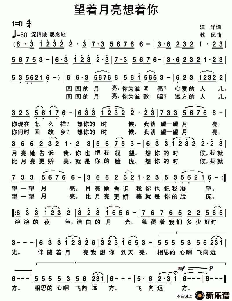 演唱的望着月亮想着你歌词,望着月亮想着你最新曲谱.