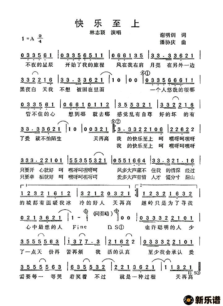 林志颖演唱的快乐至上歌词,快乐至上最新曲谱.