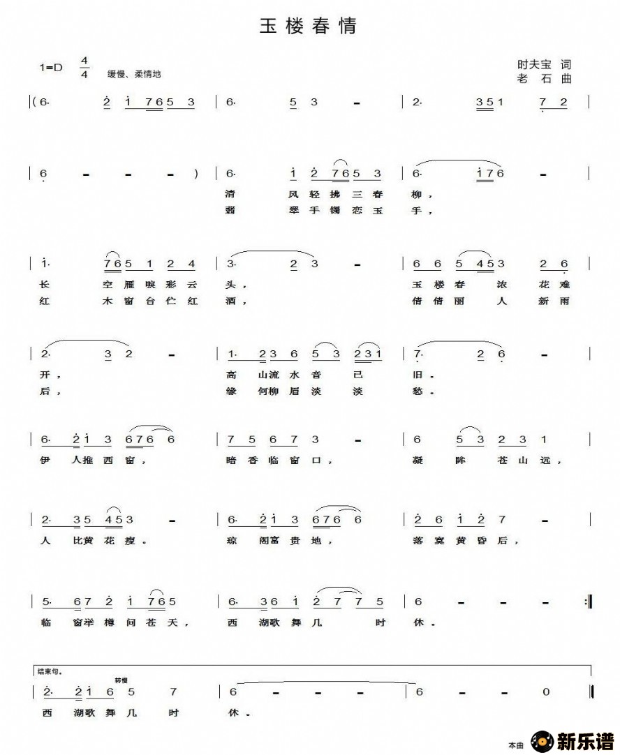 > 玉楼春情最新曲谱