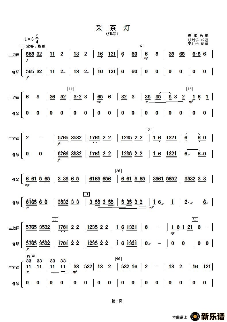 演唱的采茶灯歌词,采茶灯最新曲谱.