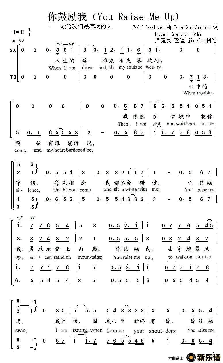 你鼓励我最新曲谱