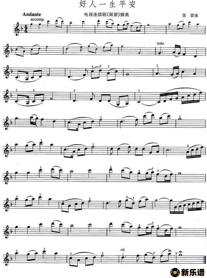 > 好人一生平安(电视剧《渴望》插曲)最新曲谱