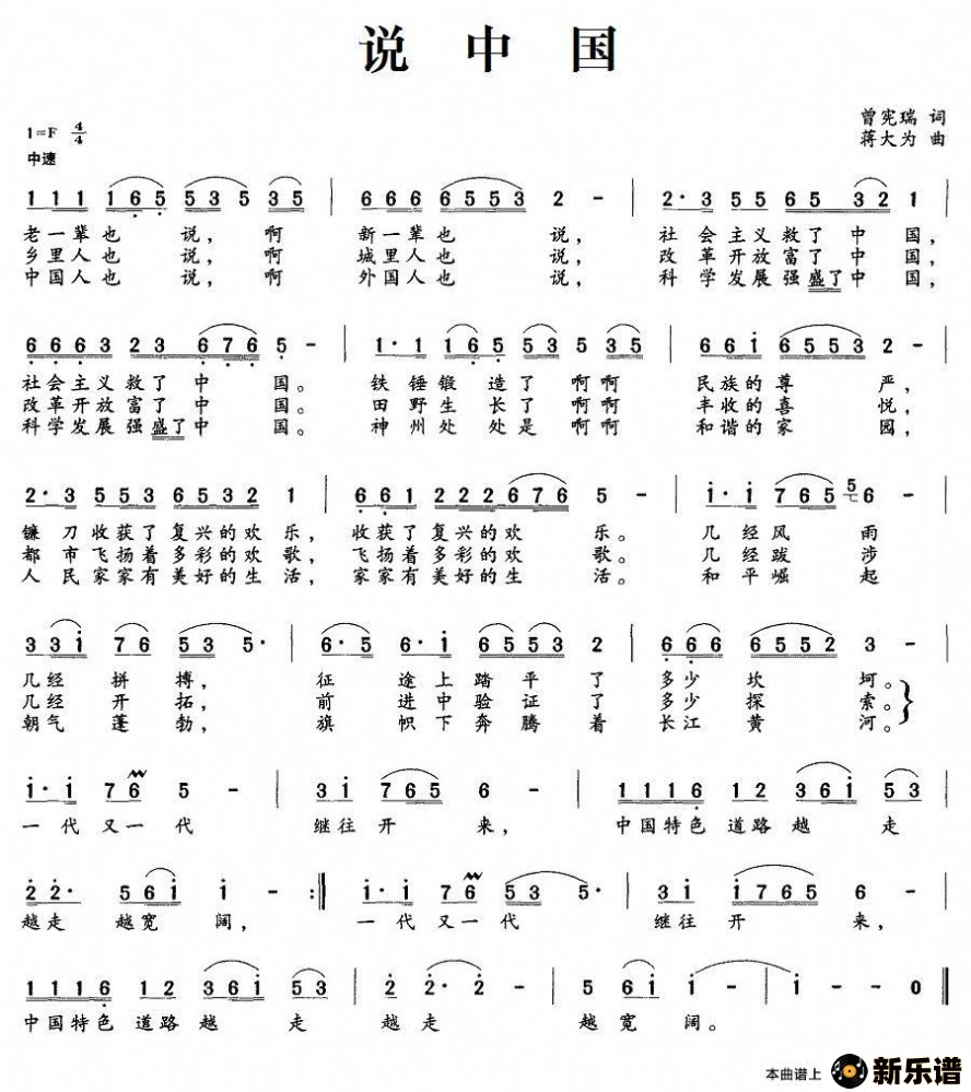 蒋大为演唱的说中国歌词,说中国最新曲谱.