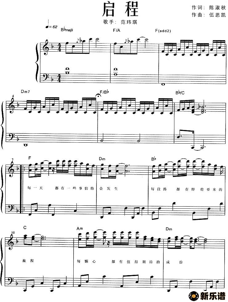 范玮琪演唱的启程歌词,启程最新曲谱.