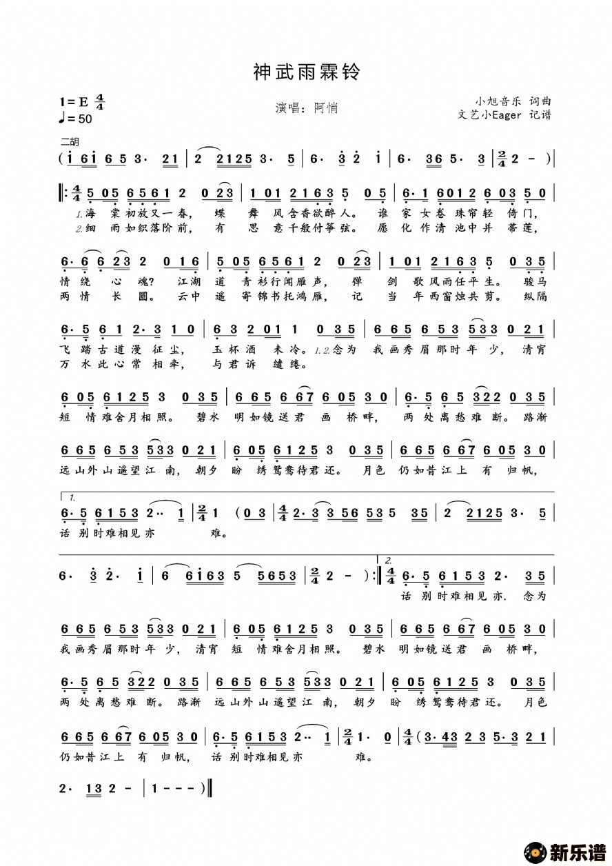 阿悄演唱的神武雨霖铃歌词,神武雨霖铃最新曲谱.