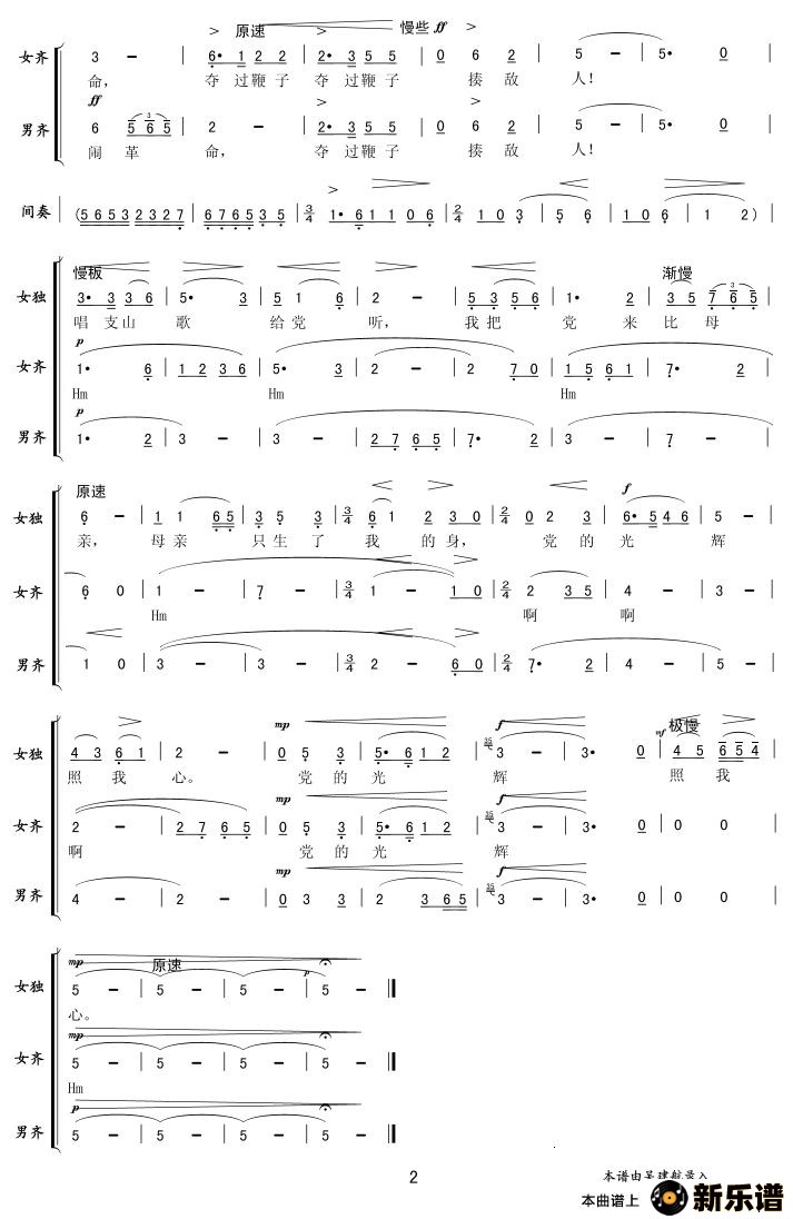 演唱的唱支山歌给党听歌词,唱支山歌给党听最新曲谱.