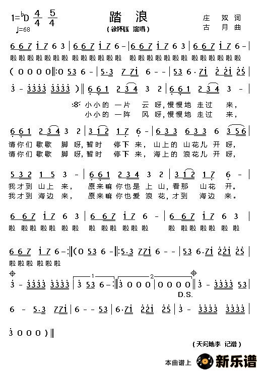 徐怀钰演唱的踏浪歌词,踏浪最新曲谱.