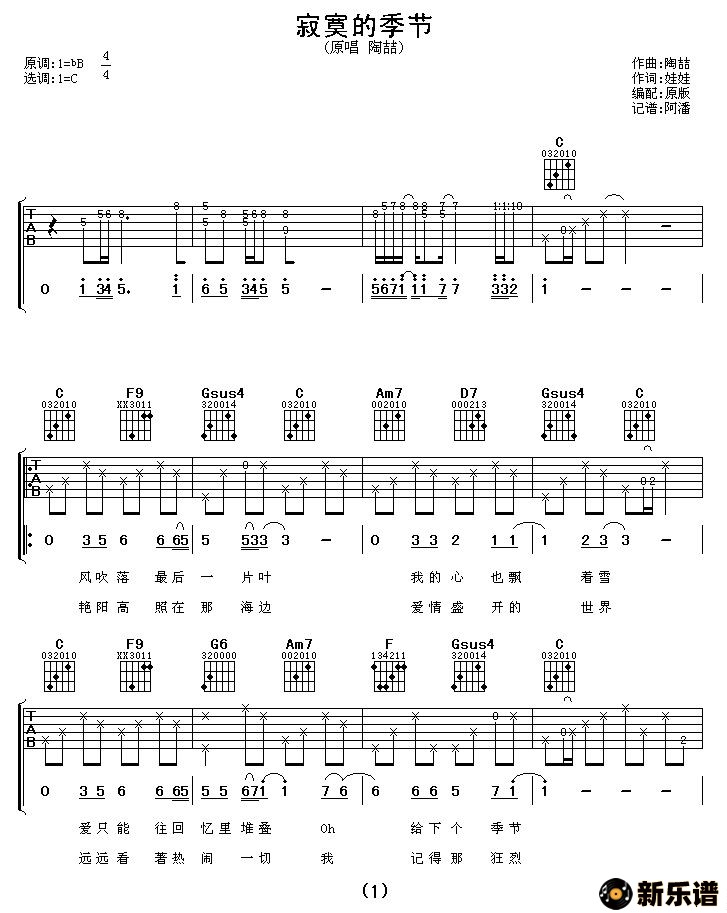 陶喆演唱的寂寞的季节歌词,寂寞的季节最新曲谱.