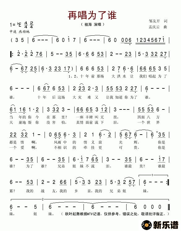 祖海演唱的再唱为了谁歌词,再唱为了谁最新曲谱.
