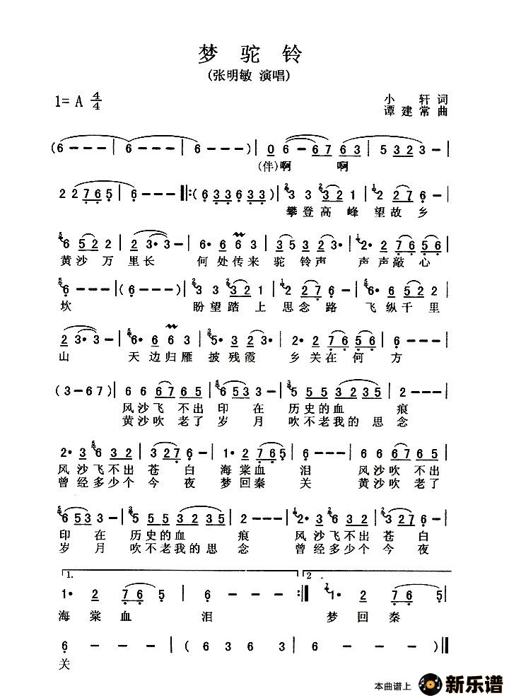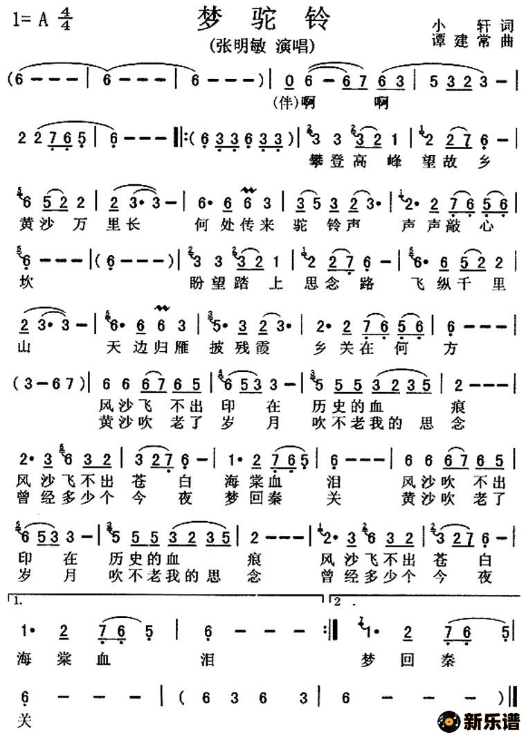 费玉清演唱的梦驼铃歌词,梦驼铃最新曲谱.